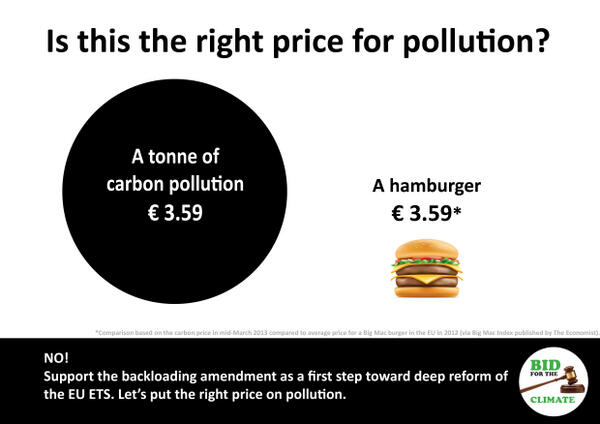 | Campaign infographic comparing the price of a hamburger to a tonne of CO2 prior to the vote. |