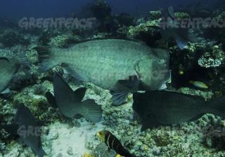 | Bumphead parrot fish at Dampier Straight, Raja Ampat, Papua, Indonesia. © Paul Hilton / Greenpeace. |