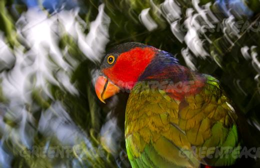 | A black-capped lory (Nuri Kepala Hitam) is seen in the outskirts of Manokwari, Papua, Indonesia. © Paul Hilton / Greenpeace |
