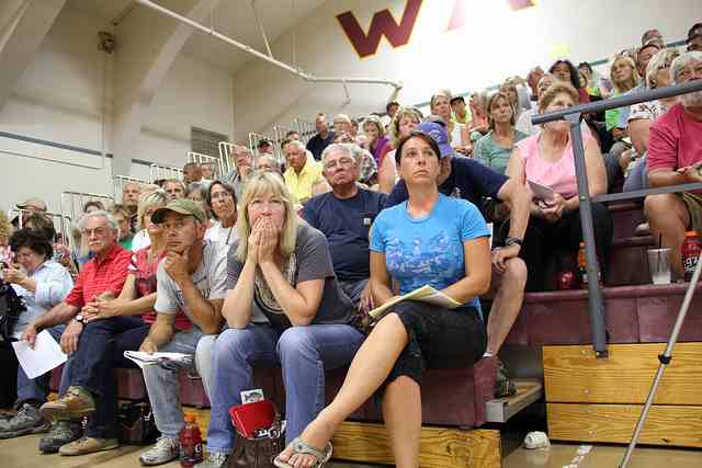 Below: evacuees from the 2012 Taylor Bridge, Washington state fire, await news about their homes.