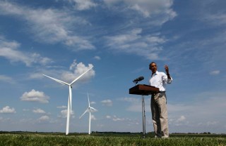 | Obama during a US wind farm visit. |