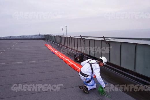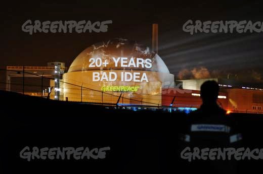 | Projection at Borssele Nuclear Power Plant in the Netherlands . Photo credit Jeroen Staats Greenpeace |