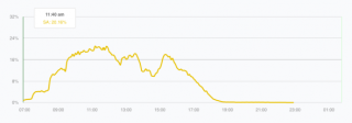On the graph above you can see there have been several periods between 27th September and 1st October where electricity from wind has actually exceeded that of demand, but the 30th September is significant, as that is the day when that was the case throughout the day from 9:30 to 18:00.