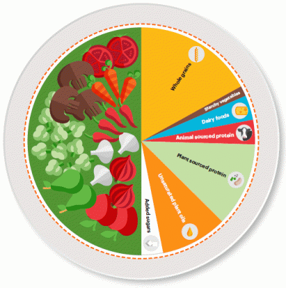 Rather than prescribe vegetarianism, the study allows for a little meat and dairy, and suggests that half the food we eat (by volume) should be fruit and vegetables.