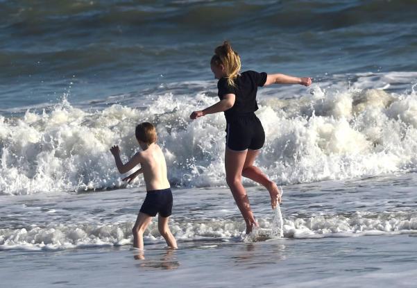 Children enjoying the water at South Beach, Tenby, Pembrokeshire, Wales. Photo credit: Reuters.