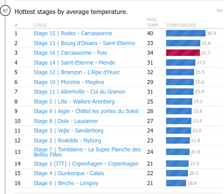 Solutions for race organisers are tricky to come by – they could attempt to incorporate shadier routes and do things like invest in tree planting schemes alongside existing routes – however considering the route is never the same and changes each year, the average stage is approx 150km – 200 km long and there are 21 stages in all that is a lot to ask.