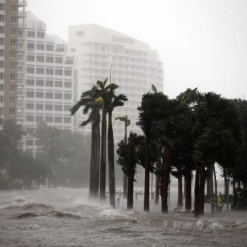 Water rises up to a sidewalk by the Miami river as Hurricane Irma arrives at south Florida, in downtown Miami, Florida, U.S. Photo credit: Reuters / Carlos Barria.